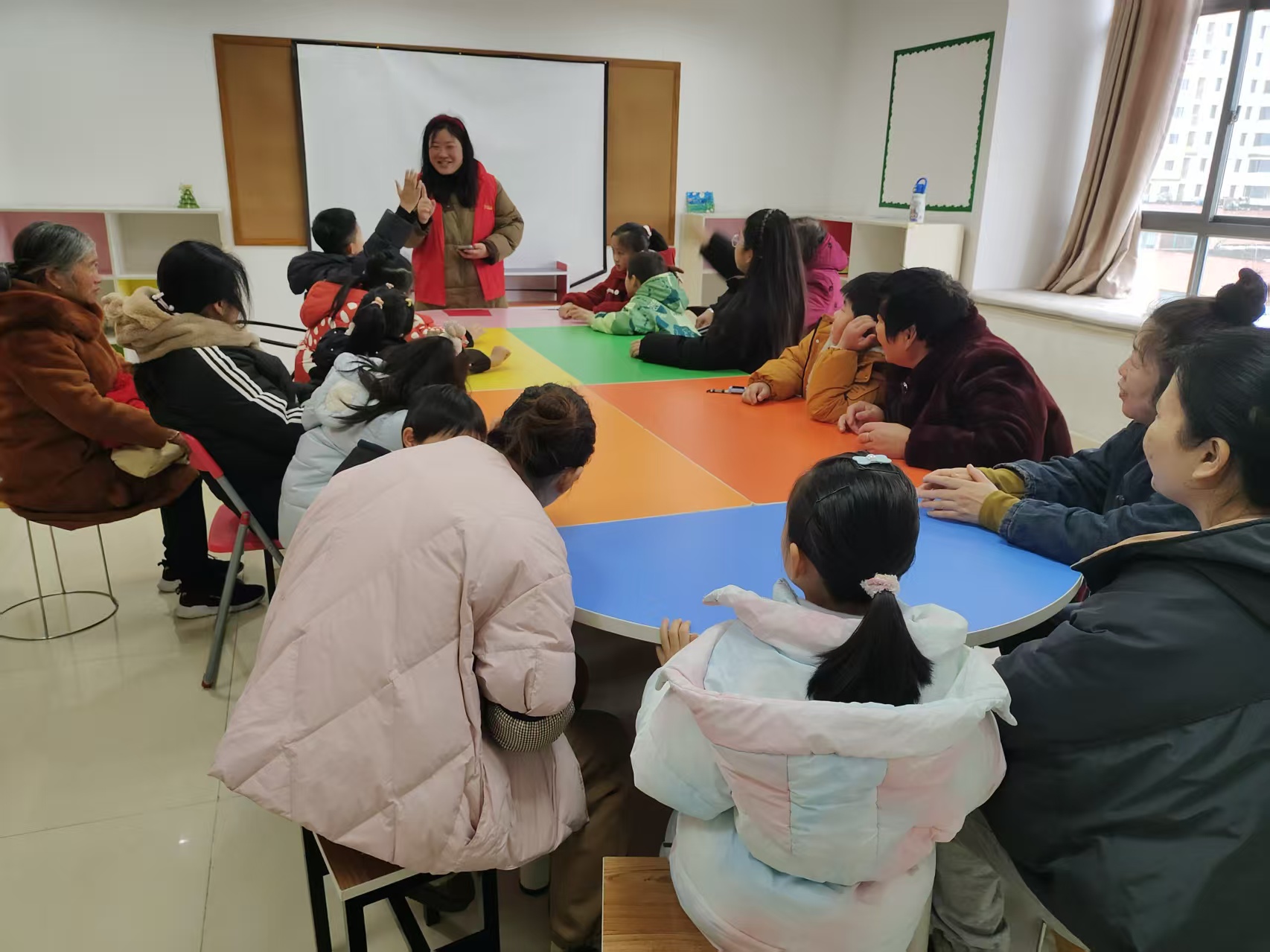 活动伊始,工作人员以趣味福字字谜拉开活动序幕,“一口田,衣包边,家家有,乐无边”,简单的谜面勾起了家长和孩子们的参与热情,大家争相抢答,在欢声笑语中解锁新年“福”意,也让现场氛围迅速升温。随后工作人员致以热情致辞,介绍本次活动的背景与意义,让大家在新春期许中,对这场非遗体验充满期待。